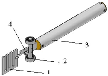Прибор представляет из себя цилиндрический корпус-ручку 3 со встроенным динамометром. На подвижной (выдвигающейся) части динамометра (штоке) 4 установлен съемный зажим для удержания полосы отслаиваемого материала 1 и опорные подвижные ролики 2. На шток 4 нанесена шкала выдвигающаяся из ручки при работе адгезиметра. Благодаря такому расположению шкалы, пользователь не сможет перекрыть ее рукой в процессе измерения (в отличии от аналогичных приборов). Конструкции NOVOTEST АМ-1М также позволяет контролировать угол отслаивания покрытия при использовании