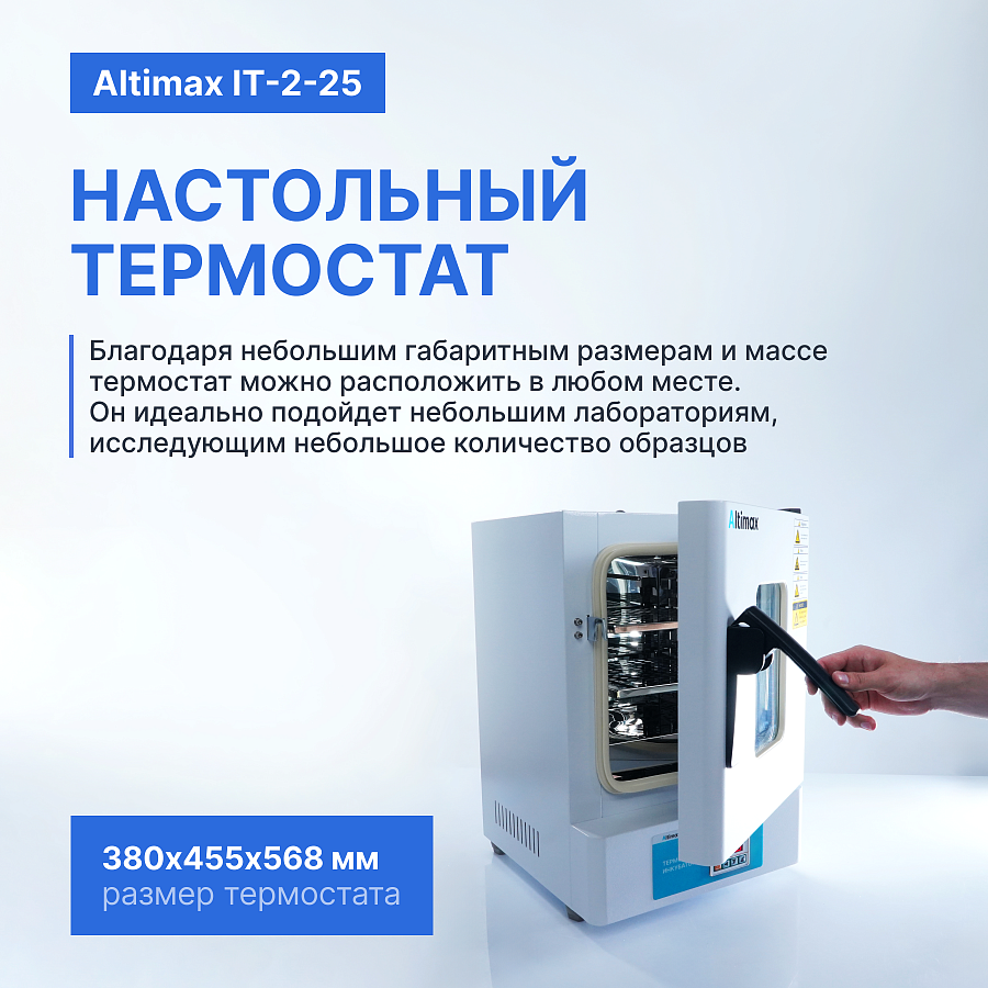 Все это делает термостат-инкубатор Altimax IT-2 надежным помощником в лабораториях, где требуется точное поддержание температуры для малого количества исследуемых образцов.