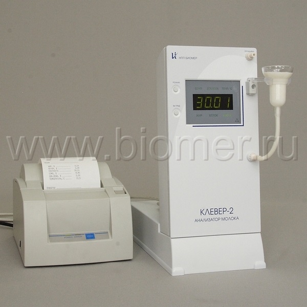 Анализатор молока Клевер-2 (УЛИКОР) обеспечивает экспресс-оценку процентного содержания жира, белка, сухого обезжиренного молочного остатка (СОМО) и плотности в одной пробе свежего цельного, консервированного молока или сливок.