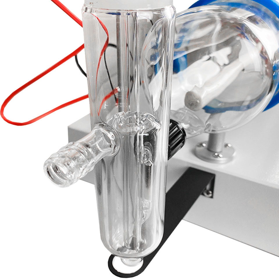 Бидистиллятор работает по принципу двойной перегонки воды. Перегонка происходит за счет нагрева и испарения с последующей конденсацией водяного пара. Нагрев и испарение осуществляется кварцевыми электронагревателями и происходит в испарительных сосудах, а охлаждение и конденсация водяного пара происходят в холодильниках с проточной водой.