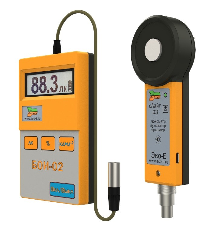 Модуль люксометра еЛайт03 с дополнительными функциями измерения яркости источников света и неравномерности светового потока является законченным полнофункциональным измерителем параметров световой среды. Он является составной неотъемлимой частью следующих профессиональных приборов: