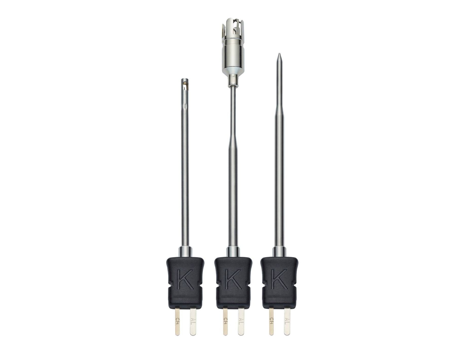 Комплект для измерения температуры в разных областях применения. Подключите зонды температуры (термопары типа K, класс 1) с подходящим измерительным прибором и начинайте измерение.