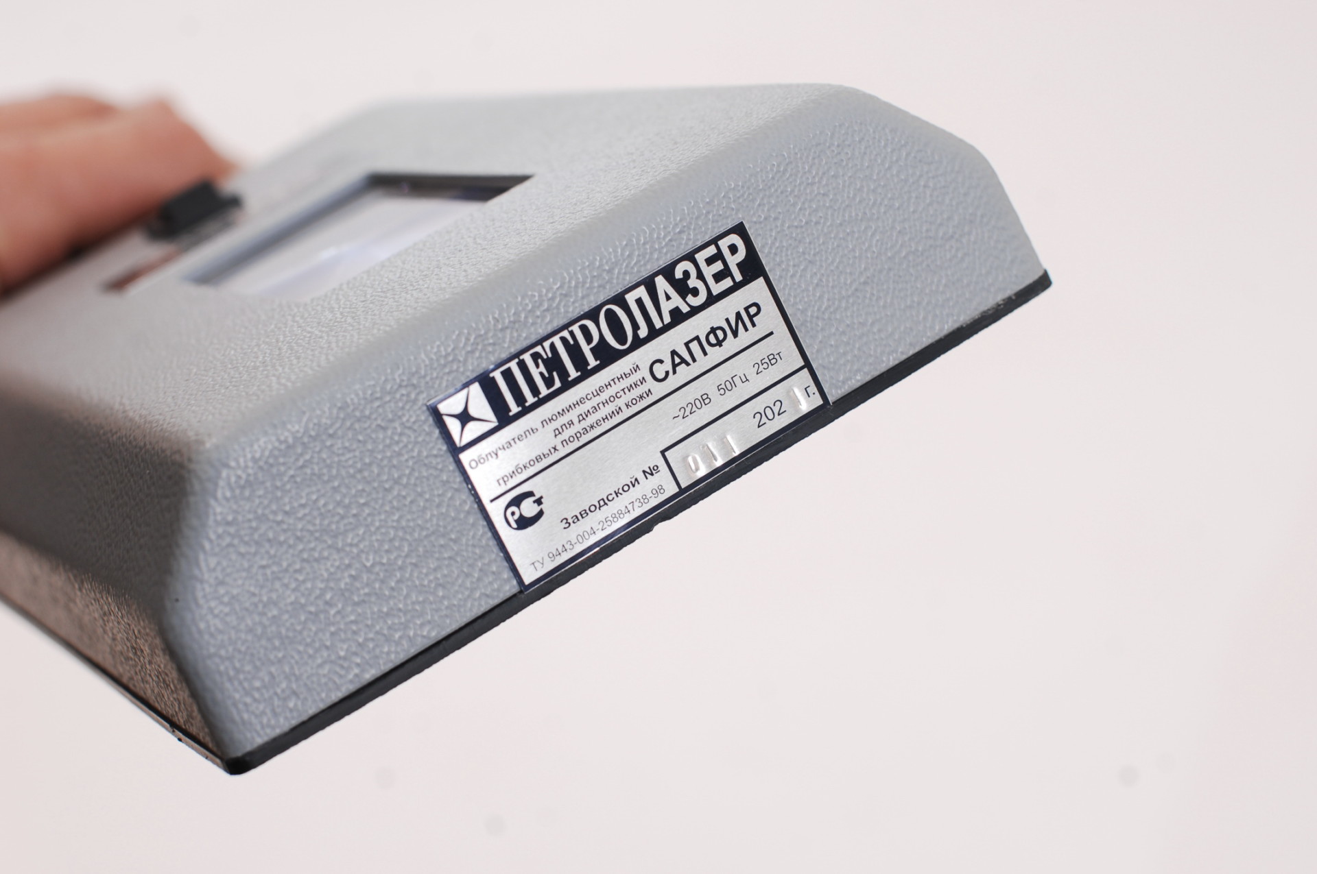 Облучатель люминесцентный (лампа Вуда) «Сапфир» — предназначен для люминесцентной диагностики микозов (грибковых заболеваний) и некоторых видов дерматозов у людей и животных. Применяется в больницах, поликлиниках, санаториях, кожных диспансерах, в детских учреждениях при проведении профилактических осмотров.