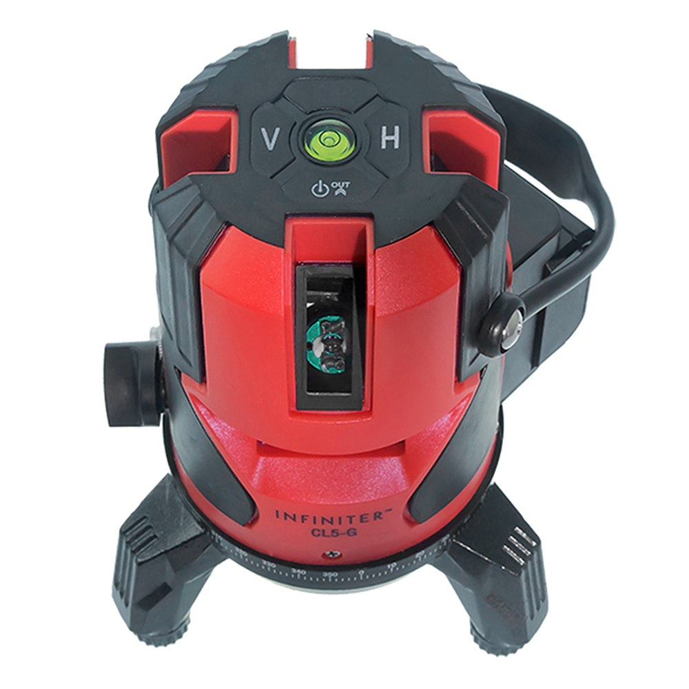 INFINITER CL-5G — новинка в линейке нивелиров INFINITER с зелеными лазерами для построения четырех вертикальных плоскостей и одной горизонтальной плоскости с плавной регулировкой угла поворота линий в новом «космическом» дизайне. Это один из лучших многолучевых лазерных нивелиров на рынке.