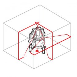 При включении проецируется одна яркая горизонтальная плоскость с углом развертки 110°. Это позволяет быстро и точно разметить горизонтальные линии. Кроме того, с помощью функциональных клавиш на верхней панели устройства можно активировать одну или две вертикальные плоскости под углом 120°, что значительно расширяет возможности разметки.