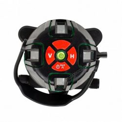 Нивелир проецирует пять линий: четыре вертикальных с развёрткой 120° и горизонтальную с углом в 110°. Вертикальные линии проецируются на 120° и заходят на потолок, формируя перекрестие над прибором. В сочетании с лазерным отвесом это позволяет использовать устройство для переноса точек по вертикали. Например, при разметке светильников. Управление осуществляется тремя кнопками: включения, переключения вертикальной и горизонтальной линий.