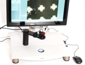 Микроскоп инвертированной схемы, со встроенной цифровой камерой и моторизованным зум- объективом обеспечивает запись, хранение, обработку и измерение геометрии изображений на встроенном промышленном компьютере. Осветительная схема модульная, имеет пять каналов освещения.