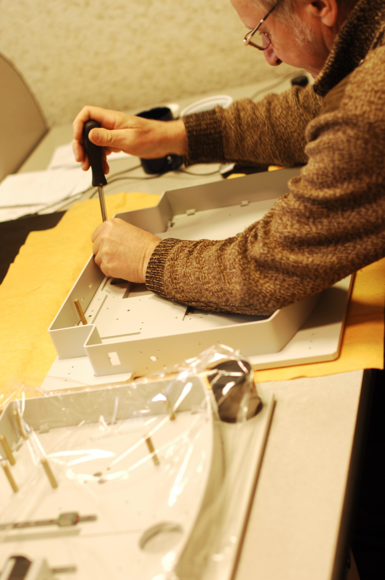 Общий вид, перфорированная пластина — кремний на предметном столе