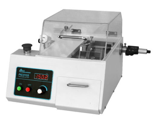 Отрезной станок Pico-155P с алмазным диском для прецизионного отрезания мелких деталей, электронных плат и чипов и прочих образцов.