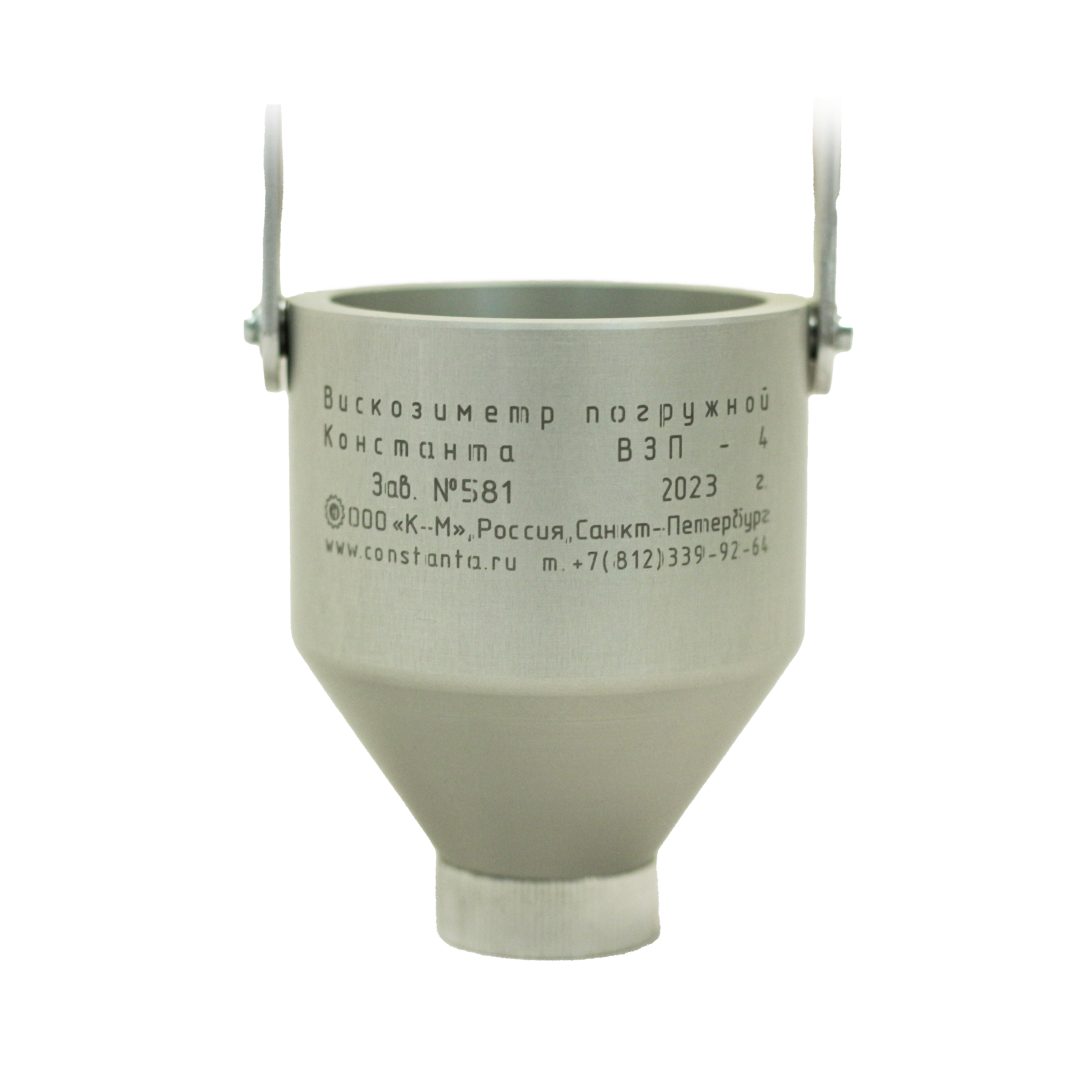 Вискозиметр представляет собой выполненный из алюминиевого сплава резервуар цилиндрической формы, переходящий внизу в полый конус со съемным соплом из нержавеющей стали. К резервуару прикреплена ручка для удобства работы.