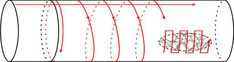 • Равномерное движение в фиксированном положении вдоль оси трубы и по окружности.