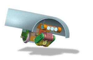 • Встроенный в мотор-колесный модуль 3-х осевой МЭМС-инклинометр фиксирует угловое положение каждого модуля (погрешность измерения ± 0,1 градус), что позволяет реализовать функции трассировки пройденного участка ТТ КС и управления движения сканера-дефектоскопа в автоматическом режиме.