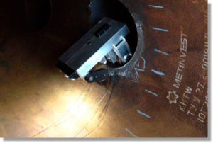 • Обследование основного металла и сварных соединений элементов трубопроводов с применением телевизионно-оптической системы (визуально-измерительный контроль) и антенных решеток с акустическими датчиками с сухим точечным контактом (волноводный ультразвуковой контроль, поперечная ультразвуковая волна SH-поляризация).