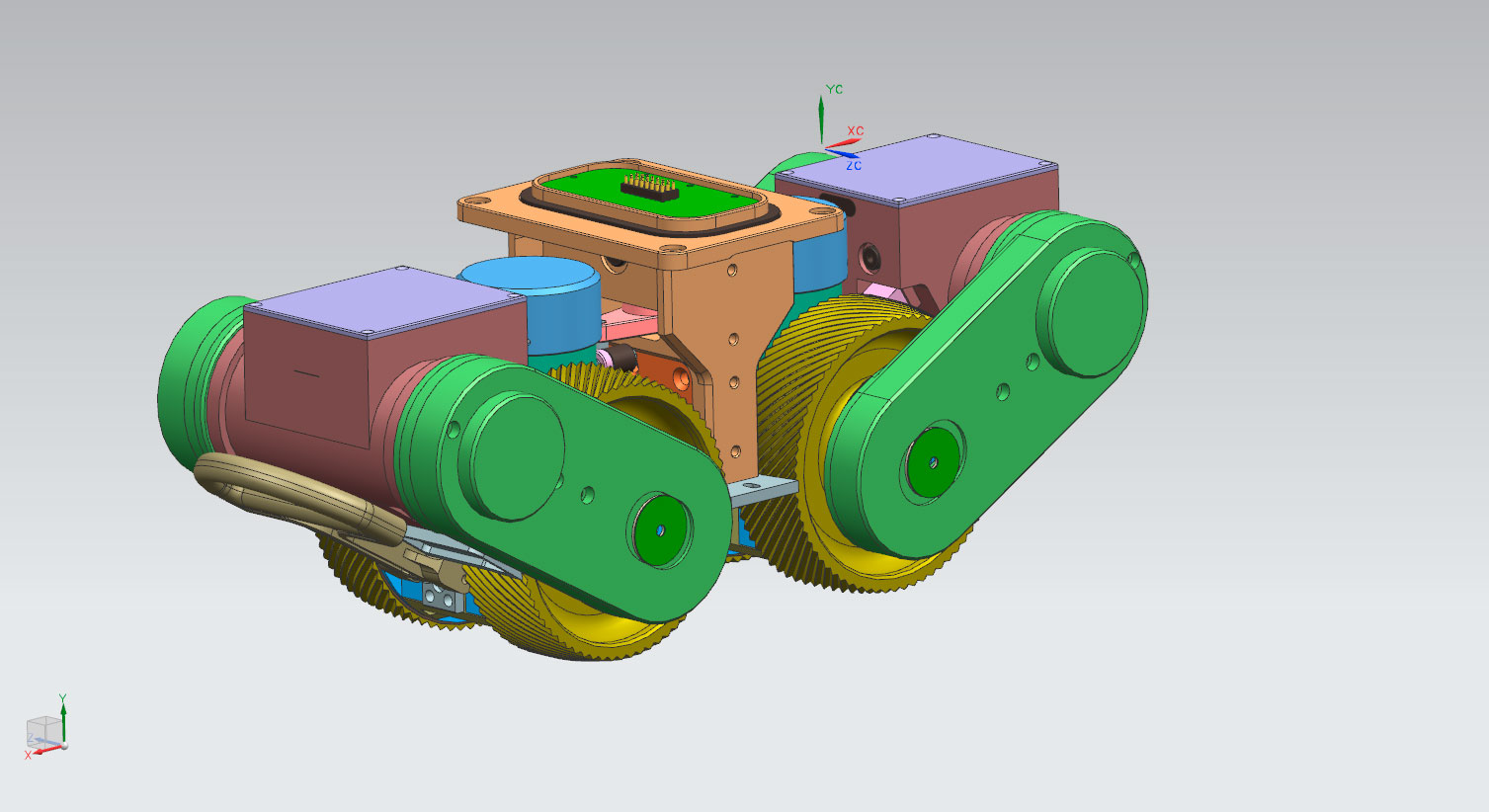 • Встроенный в мотор-колесный модуль 3-х осевой МЭМС-инклинометр фиксирует угловое положение каждого модуля (погрешность измерения ± 0,1 градус), что позволяет реализовать функции трассировки пройденного участка ТТ КС и управления движения сканера-дефектоскопа в автоматическом режиме.