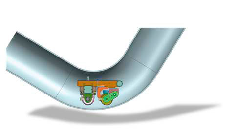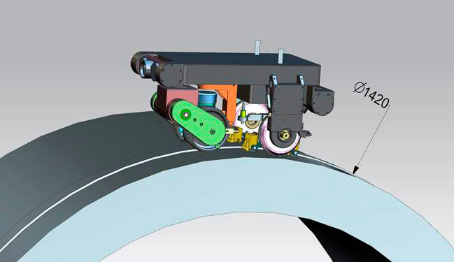 • Прохождение сканера-дефектоскопа по внутренней полости ТТ КС по элементам различного сортамента (трубы, отводы, тройники, переходы, ЗРА) Ду 300-1400 мм обеспечивается конструкцией механической платформы.