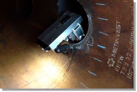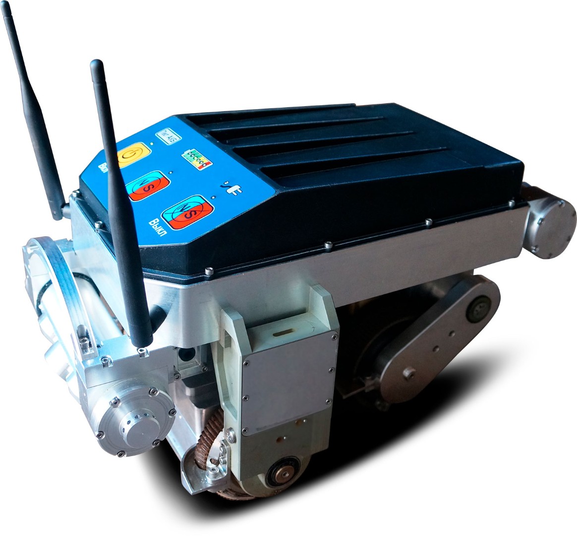 • Передвижение сканера-дефектоскопа по произвольной траектории обеспечивается магнитными мотор-колесными модулями.