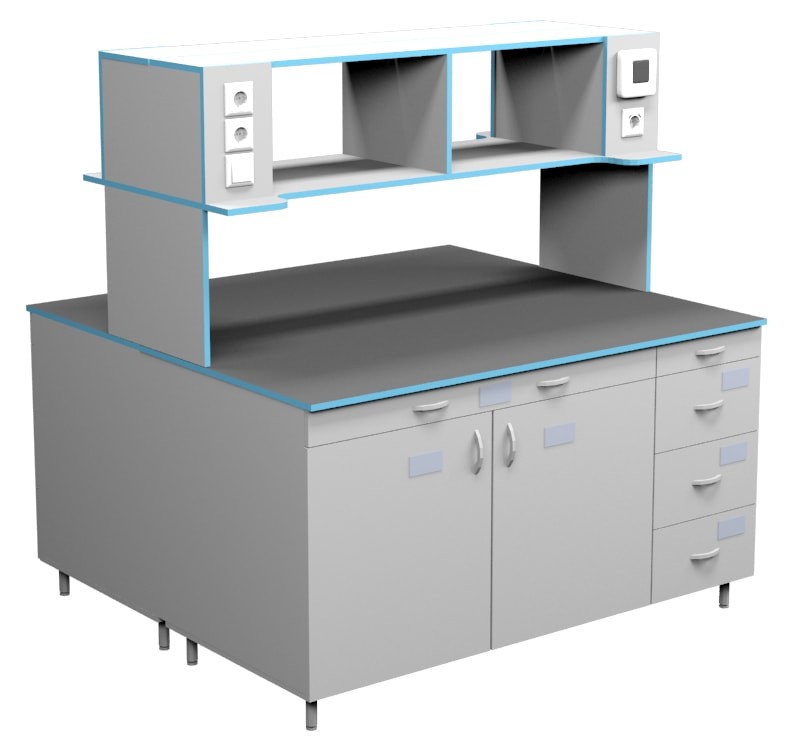 Стол островной для работы стоя СЛО НВК 1500 МОН (1520*1520*1650) Описание: Столы островные лабораторные предназначены для комфортного проведения физических и химических исследований и работ стоя с применением лабораторных приборов, оборудования и инструментария в лабораториях различного типа (производственных, научных, учебных и т.п.). Особенности: Широкий верхний ящик позволяет удобно хранить холодильники и термометры. Ящик снабжен специальным противоскользящим ковриком. Специальные доводчики позволяют закрывать тумбу бесшумно Встроенная метеостанция Встроенный USB-разъем Полочка для телефона Выдвижной столик Встроенные файлы: удобно подписывать ящики и тумбы Выдвижные ящики направляющих обеспечивают плавное закрывание По заказу столешницы могут быть выполнены из: химстойкого пластика керамогранита (плитка) полипропилена нержавеющей стали монолитной керамики эпоксидного керамзита Дополнительные опции: Кран для газа Замок в нижней тумбе Полипропиленовые поддоны для хранения реактивов Кран холодной воды со сливной раковиной из полипропилена Автономная локальная вытяжка