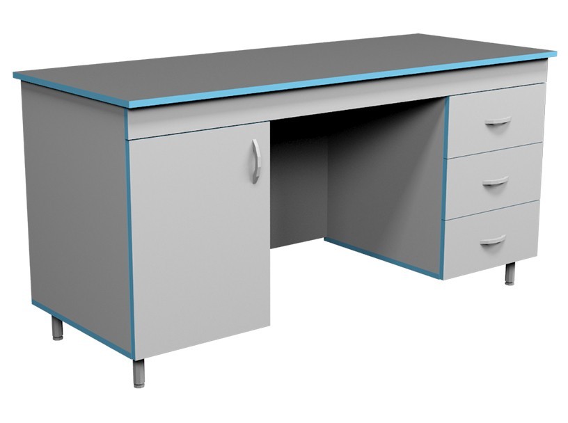 Стол письменный СП НВК 1500 (1500*600*750) • Габаритные размеры 1500*600*750• Ламинированный корпус с противоударной ПВХ кромкой 2 мм на фасадах• 3 выдвижных ящика с направляющими обеспечивают плавное закрывание• Тумба с дверцей и полкой. Специальные доводчики позволяют закрывать тумбу бесшумно.
