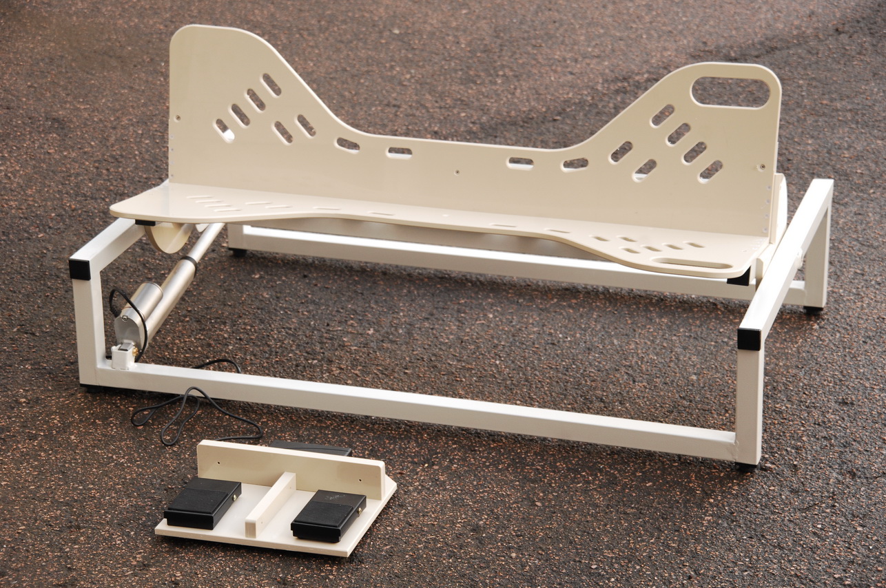 Регулировка положения пациента вдоль продольной оси тела позволяет получить доступ к органам брюшной полости, перемещая их для удобного доступа при диагностике и проведении оперативного вмешательства. Для удлинения ложемента, с целью разместить на СВЛ-2 более крупное животное, в комплектацию может входить удлинитель. При проведении артроскопических манипуляций с использованием артроскопа — к изделию комплектуется дистрактор конечностей. К этому станку ( накладке на стол) мы также выпускаем электропривод, для перекладывания фиксированного животного с боку на бок без усилий и фиксации в любом промежуточном положении. Управление приводом — от педали (см. Фото 6, 7). Поверхности СВЛ-2 выполнены из химически стойкого полипропилена толщиной 10 мм и позволяют любые способы дезинфекции. Для фиксации животного в ложементе предусмотрено множество удобно расположенных отверстий.