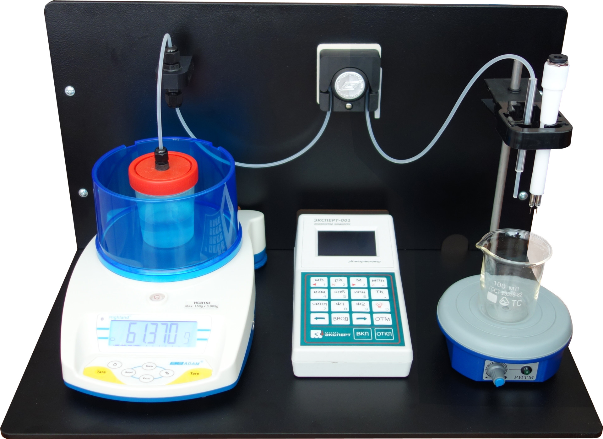 Комплект построен на базе анализатора жидкости «Эксперт-001», поддерживающего два метода титрования: