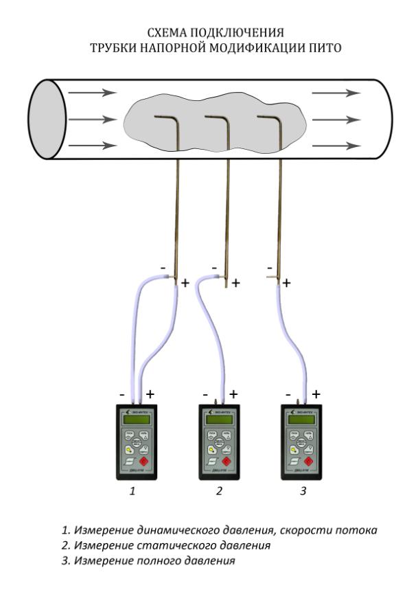 Схема подключения трубки напорной Пито к манометру