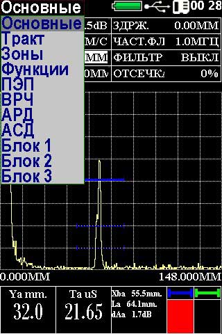 • два вида представления сигналов: детектированый и радио для повышения надежности выявления различных дефектов и повышения точности при работе в режиме толщинометрии