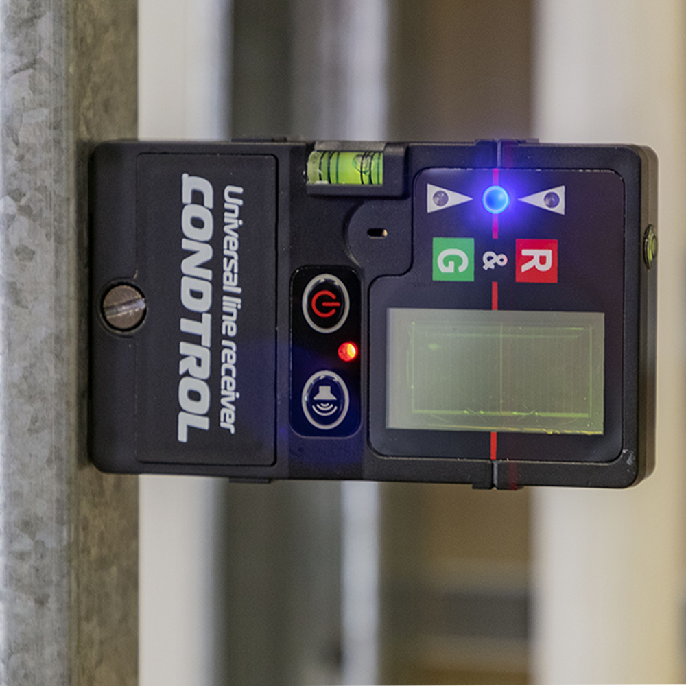 ULR CONDTROL существенно увеличивает диапазон работы лазерных нивелиров. Показания снимаются по шкале мишени, расположенной на поверхности отражателя с тыльной стороны, а также с помощью светодиодной индикации на фронтальной стороне. Благодаря наличию двух рабочих поверхностей, приемник отлично подходит для работы внутри помещений и на улице. Встроенный в корпус пузырьковый уровень позволяет с максимальной точностью контролировать вертикальность рейки. В верхнюю часть детектора-отражателя встроен магнит, с помощью которого аксессуар можно закрепить на потолочном профиле или вертикальной конструкции для быстрой и удобной настройки лазерного нивелира.