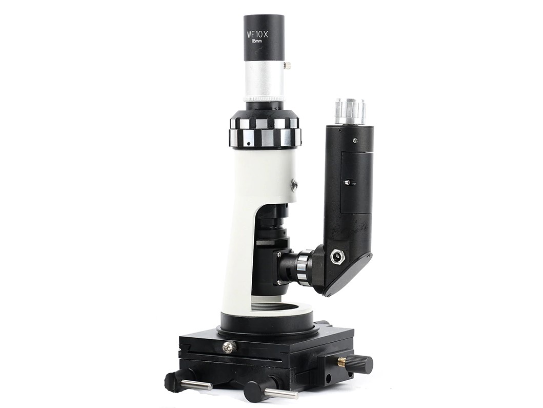 • магнитный координатный стол с микроподвижками для установки на различные металлические валы и крупногабаритные детали, которые невозможно поместить под обычный металлографический микроскоп, также имеется V-образный вырез для позиционирования на цилиндрических изделиях Ø≤10 мм;
