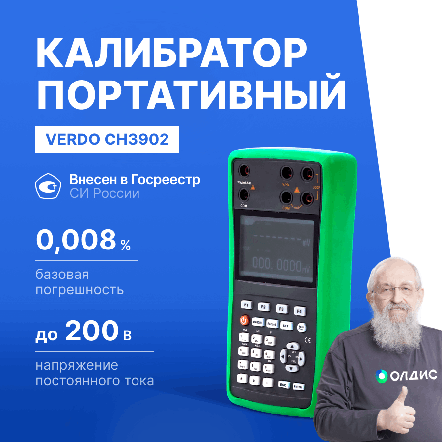 Калибраторы сигналов VERDO CH3902 предназначены для измерения и воспроизведения постоянного тока и напряжения, сопротивления и частоты. Приборы имеют низкую погрешность в 0,008%.