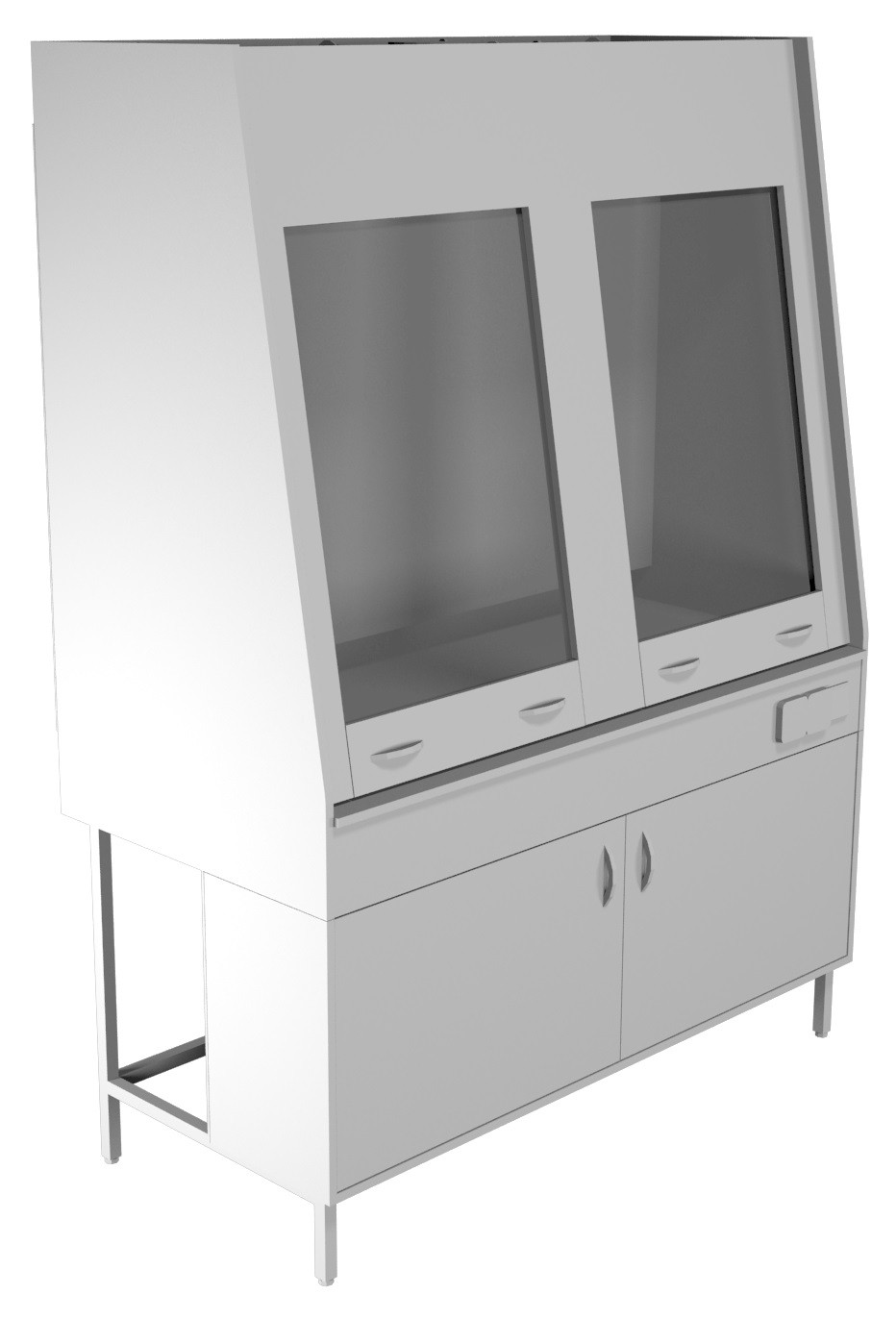 Вытяжной шкаф НВ-1800 ШВд-ПБ. Лабораторный вытяжной шкаф с двумя рамами. Нижняя тумба с полкой. Вытяжные лабораторные шкафы применяется при работе с токсичными и вредными летучими материалами, с чистыми материалами, с растворением или разложением под температурной обработкой, при проведении анализа проб и многих других. Покрытие столешницы вытяжного лабораторного шкафа выполнена из полипропилена. Полипропилен обладает рядом преимуществ: устойчив кпродолжительному воздействию кислот, щелочей и органических растворителей Ограничено стоек к воздействию высоких температур Влагостоек Возможные варианты различного исполнения столешниц, стойких к агрессивным материалам, делают вытяжной шкаф незаменимым для любой лаборатории. В комплектацию вытяжного шкафа входит: рабочая камера: подъемная рама с противовесами, покрытие столешницы — полипропилен, две зоны вытяжки светильник люминесцентный с одноклавишным выключателем цельносварной металлический каркас в порошковой окраске регулируемые по высоте опоры 2 электророзетки нижняя тумба с полкой Дополнительная комплектация (по запросу): Столешница из нержавеющей стали Взрывозащищенное исполнение Вентиляционный блок, гофротруба Вытяжка из тумбы.